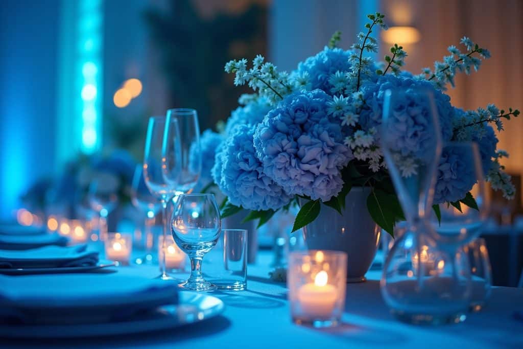 Nun geht es ans Eingemachte! Hier sind einige inspirierende Ideen, wie du blaue Blumen stilvoll in deine Hochzeitsdeko integrieren kannst:
