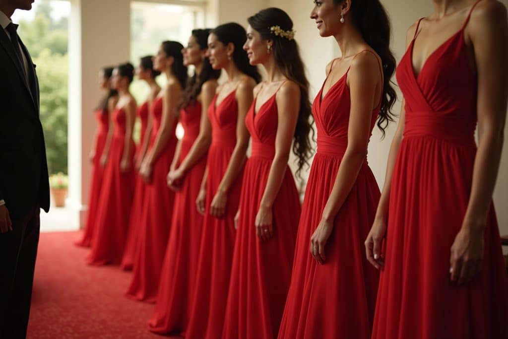 Rote Brautjungfernkleider sind ein starkes Statement, das gut in dein Hochzeitskonzept integriert werden sollte. Achte darauf, dass die Farbe Rot sich auch in anderen Elementen deiner Hochzeit wiederfindet, um ein harmonisches Gesamtbild zu schaffen.