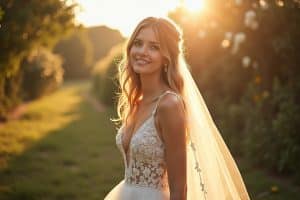 Tüll ist das Material, aus dem Volumenträume gemacht sind. Er ist leicht, transparent und sorgt für den typischen Braut-Look, ohne das Kleid tonnenschwer zu machen. Chiffon hingegen ist ein sehr weicher, fließender Stoff, der wunderschön fällt. Er eignet sich hervorragend für Empire-Kleider oder A-Linien im Sommer, da er luftig ist und bei jeder Bewegung mitschwingt. Beide Stoffe sind ideal, wenn du eine gewisse Leichtigkeit und Fee-haftigkeit in deinem Look anstrebst.