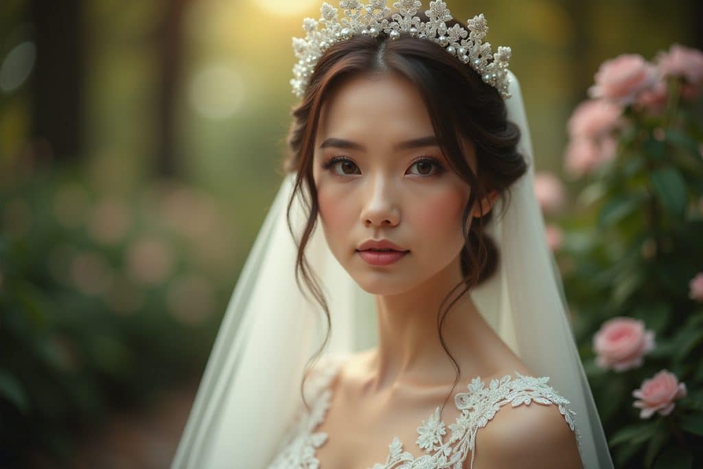 Der Schleier ist ein traditioneller Brautschmuck, der dem Brautlook eine romantische und elegante Note verleiht. Es gibt Schleier in verschiedenen Längen, Materialien und Designs. Wähle einen Schleier, der zu deinem Brautkleid und deinem Stil passt.